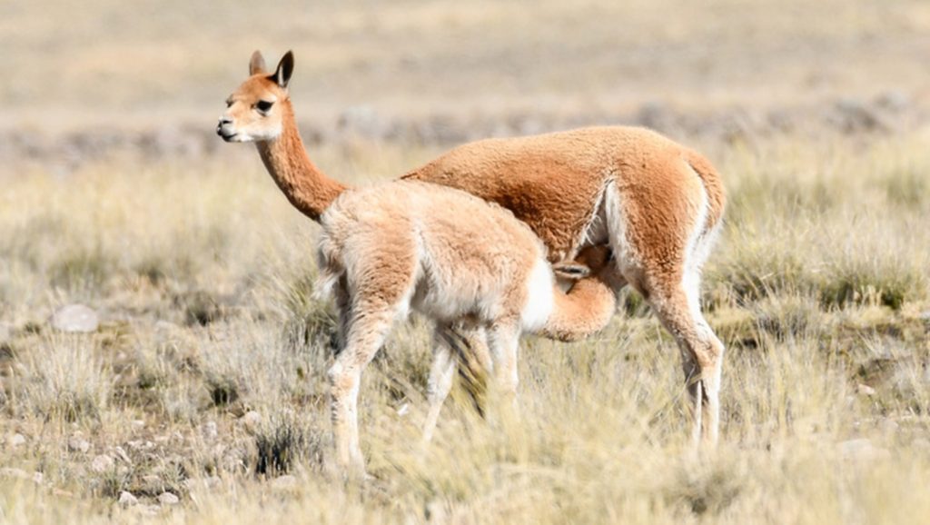 Este camélido sudamericano y silvestre es el más pequeño del Perú, mide aproximadamente entre 80 cm y 1.20 m de alto, y pesa entre 35 y 55 kg, dependiendo del sexo, edad y altitud en la que se encuentran. Esta especie es extraordinariamente valorada por su fibra, por ser una de las más finas del mundo (≈12 micras). Es por ello que su uso está regulado y se obtiene mediante prácticas tradicionales, como el “chaccu”, tradición incaica controlada y sostenible, que garantizan el bienestar de los individuos y la recuperación del vellón. Esta valiosa fibra es obtenida mediante esquilas controladas realizadas cada 2 o 3 años, variando de acuerdo a la población y protocolo de manejo.